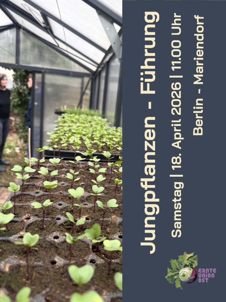 Unsere Jungpflanzen-Gärtnerin Sonja zeigt euch die Ernte Union Ost – Kinderstation in Berlin-Mariendorf. Am Samstag, 18. April um 11 Uhr. Die Führung geht ungefähr eine Stunde. Im Anschluss freuen wir uns auf den Austausch mit euch. Um 13 Uhr schließt der Garten seine Pforten.